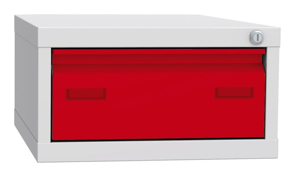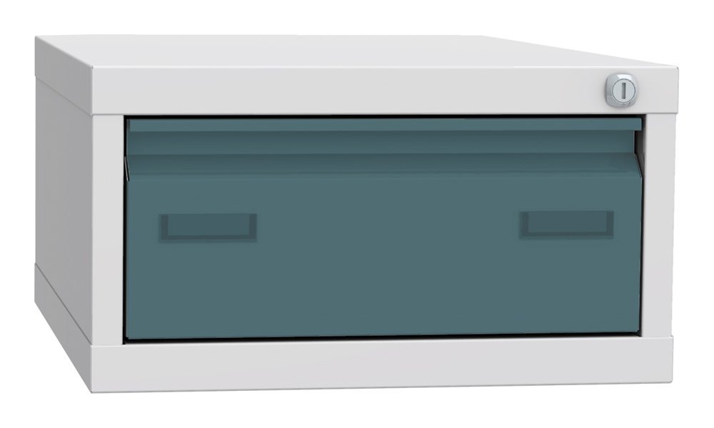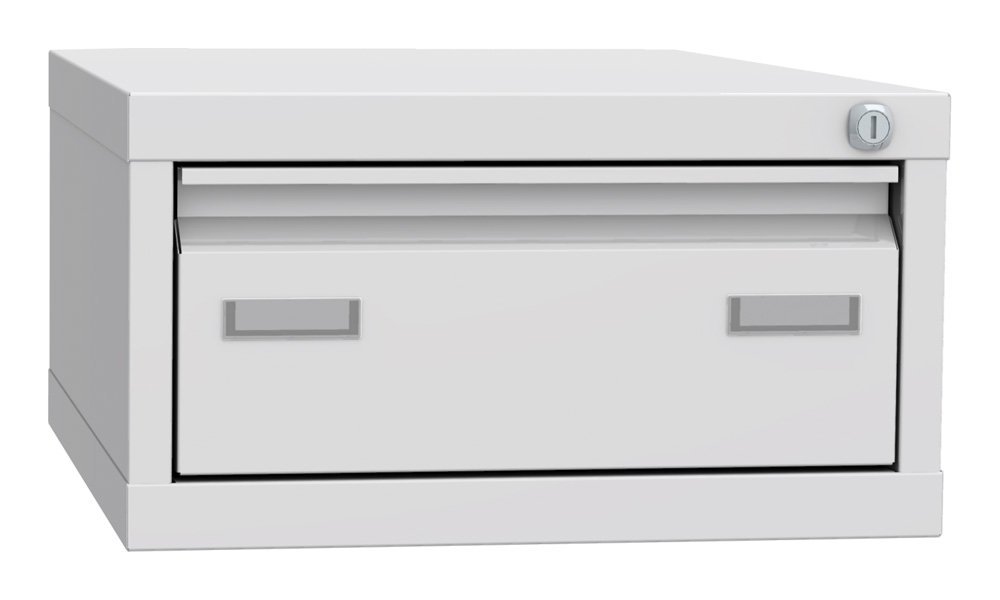 Lístkovnice pro formáty A6 jednozásuvková (v zásuvce jsou 2 oddělení). Výška 240 x šířka 440 x hloubka 600 mm. Kovový korpus v barvě světle šedé RAL 7035, zásuvka v různých barvách, cylindrický zámek.