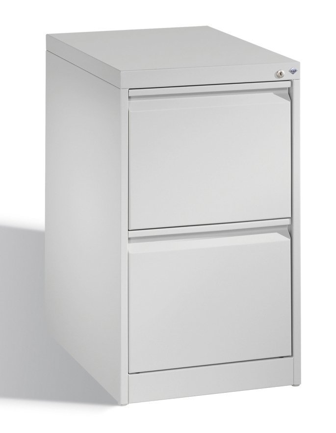 Dvouzásuvkové kovové kartotéky pro dokumenty nebo závěsné pořadače formátu A4 nebo Foolscap, šířka 413 nebo 470, výška 711, hloubka 622 mm, centrální zámek, různé barvy. V barvě světle šedé nebo béžové (v šířce 413 mm) skladem.