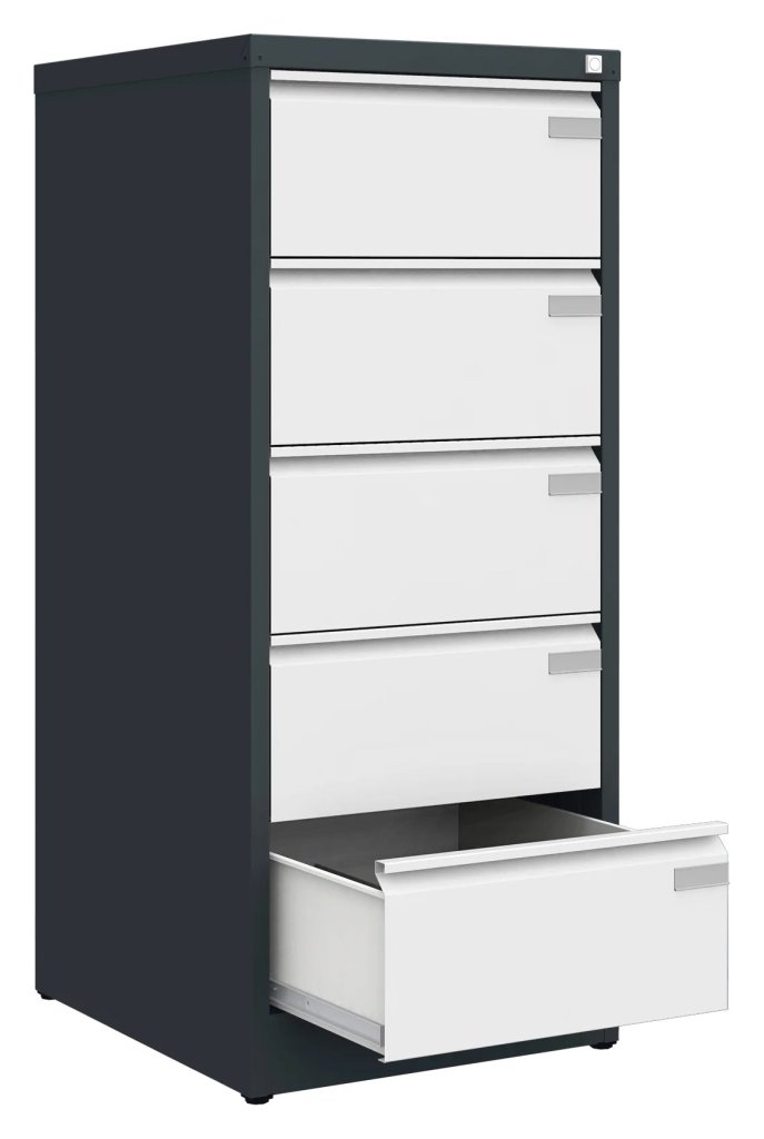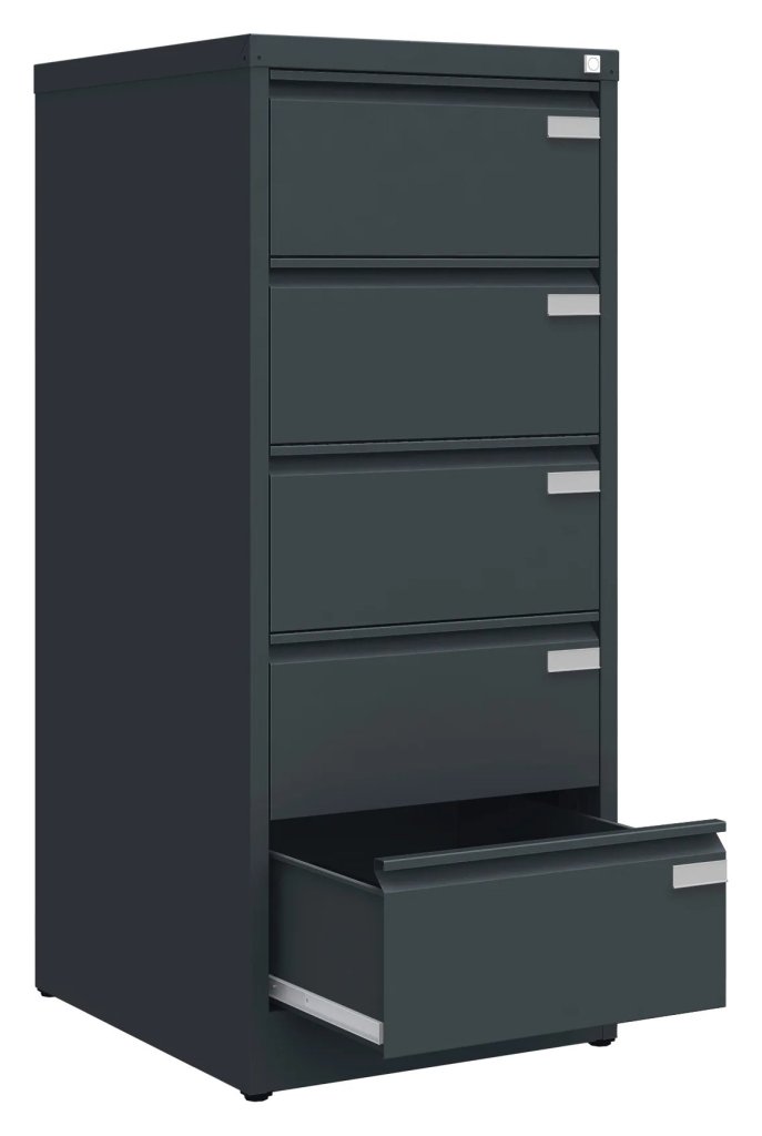 Pro ukládání dokumentů A5 horizontálně. Svařovaný korpus, 90% výsuv zásuvek. Centrální cylindrický zámek. Povrchová úprava celý popis a parametry
