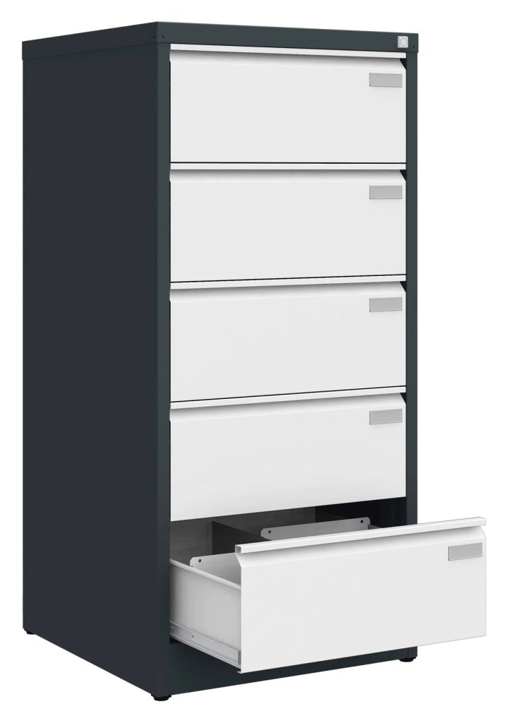Pro ukládání dokumentů B5 horizontálně. Svařovaný korpus, 90% výsuv zásuvek. Centrální cylindrický zámek. Povrchová úprava práškovým lakem, na výběr 16 barevných odstínů. Rozměry v mm (V x Š x H) 1285 x 345 x 630.