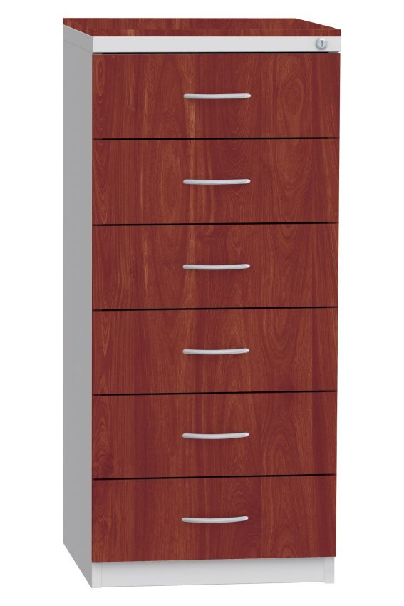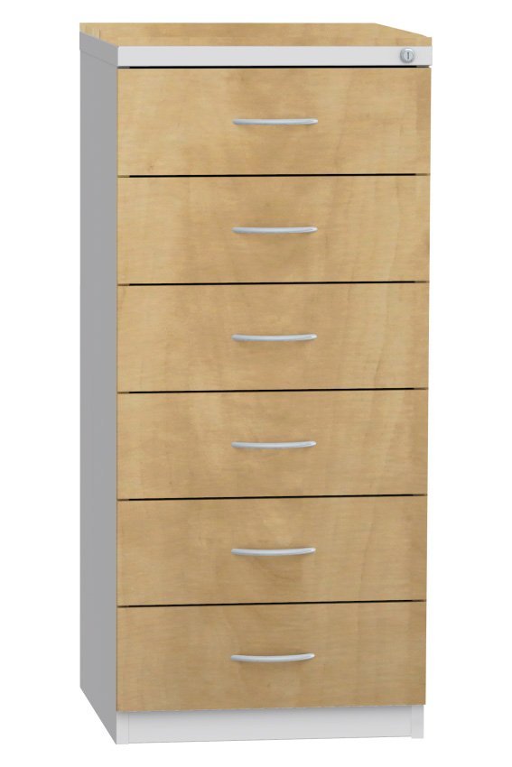 Lístkovnice pro formáty A5 šestizásuvková (v každé zásuvce jsou 2 oddělení). Výška 1250 x šířka 560 x hloubka 600 mm. Kovový korpus v barvě světle šedé RAL 7035, zásuvky lamino v dezénu buk, bříza nebo třešeň. Centrální zámek.