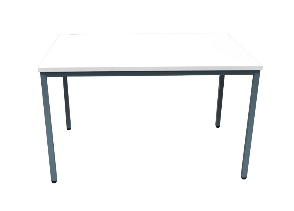 Konferenční stůl na kovové podnoži, rozměr desky 1200 x 800 mm, barva konstrukce RAL 7031, barva desky bílá. Pracovní plocha je vyrobena z oboustranně laminované dřevotřískové desky tloušťky 25 mm lemované ABS hranou. Výška stolové desky 720 mm. Snadná a rychlá montáž dle přiloženého návodu.