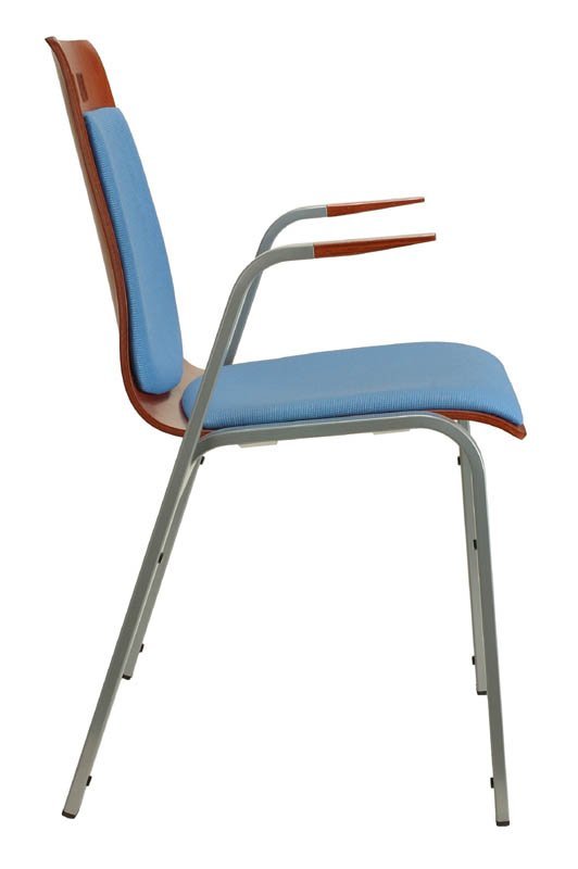 Dřevěná konferenční židle se stabilní svařovanou konstrukcí v odstínu buk, třešeň, ořech nebo mahagon s možností čalounění sedáku i opěráku. Barva kostry černá, šedá nebo chrom. Varianta s područkami nebo bez.