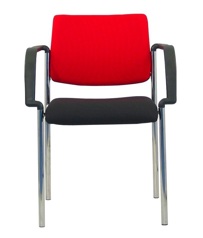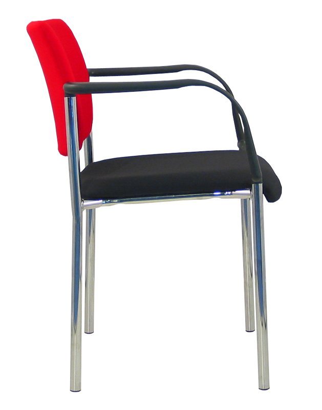 Konferenční židle stohovatelná, kostra ocelová čtyřnohá v barvě N1 černá, N2 stříbrná nebo N4 chrom, čalouněný sedák a opěrák. Opěrák je čalouněný i zezadu. Cena včetně područek.