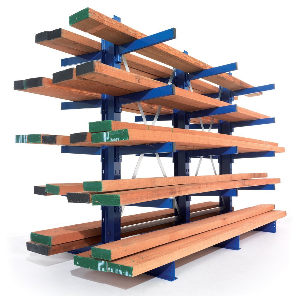 Regály pro střední zatížení pro stojící a ležící dlouhý materiál. Výška 2000 - 3000 mm, šířka 1000 nebo 1300 mm, hloubka 1000 nebo 1600 mm, počet ramen 8 - 10 na jednu stojinu, nosnost ramene 250 nebo 430 kg, nosnost jednostranné stojiny 1250 - 2340 kg, hmotnosti regálů mezi 50 - 202 kg. Barva RAL 5010 modrá. Pouze jedna stojina, slouží jako prodloužení základních regálů.