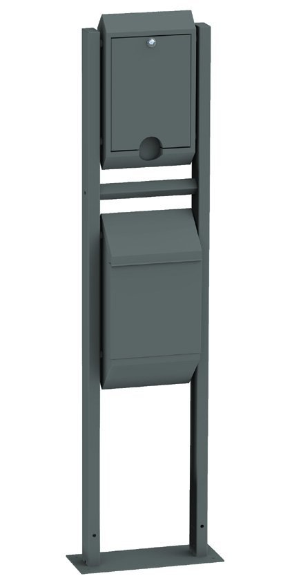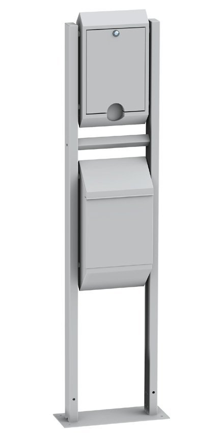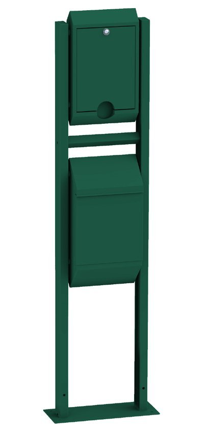 Koš na psí exkrementy se stojanem. Horní uzamykatelná schránka na sáčky + dolní odpadkový koš + stojan na přišroubování do podkladu. Nádoby i stojan jsou pozinkované s povrchovou úpravou venkovní práškovou barvou pro delší životnost.