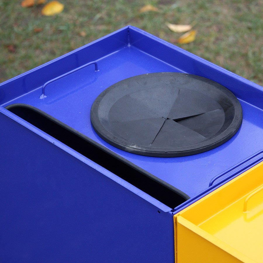 Vhodný na třídění odpadů v administrativních budovách, školách,úřadech atd. Volně odnímatelné víko s odpovídajícím vhozovým otvorem. Objem 100 l. Rozměry v mm (V x Š x H) 760 x 400 x 300.