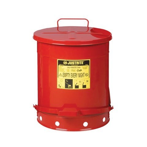 Hadry, sorbenty, utěrky a oblečení znečištěné ředidly, rozpouštědly, oleji, hořlavými lepidly a jinými hořlavými kapalinami jsou potenciálně nebezpečné z hlediska vzniku požáru, pokud jsou odloženy a skladovány nesprávným způsobem. Bezpečnostní koše snižují výrazně riziko vzniku požáru.