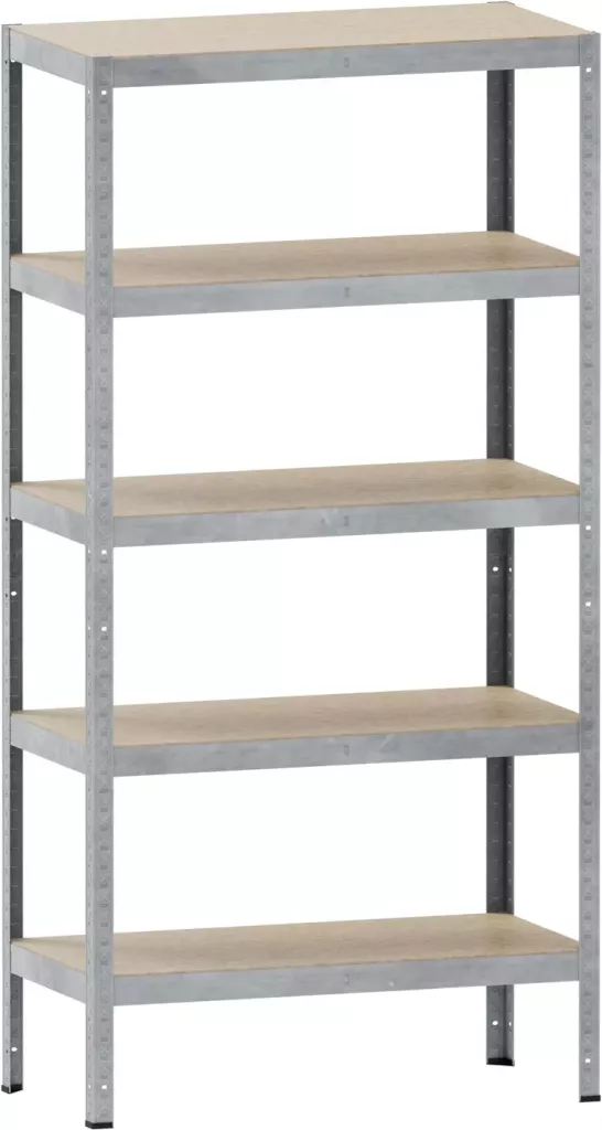 Kovový bezšroubový regál určený k širokému použití. Nosnost police stanovena na maximální rovnoměrné zatížení 150 kg a slouží k ukládání středně těžkých předmětů. Hloubka regálu 450 mm, šířka 900 mm, výška 1800 mm, 5 polic.