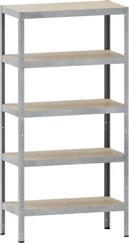 Kovový bezšroubový regál určený k širokému použití. Nosnost police stanovena na maximální rovnoměrné zatížení 150 kg a slouží k ukládání středně těžkých předmětů. Hloubka regálu 400 mm, šířka 900 mm, výška 1800 mm, 5 polic.