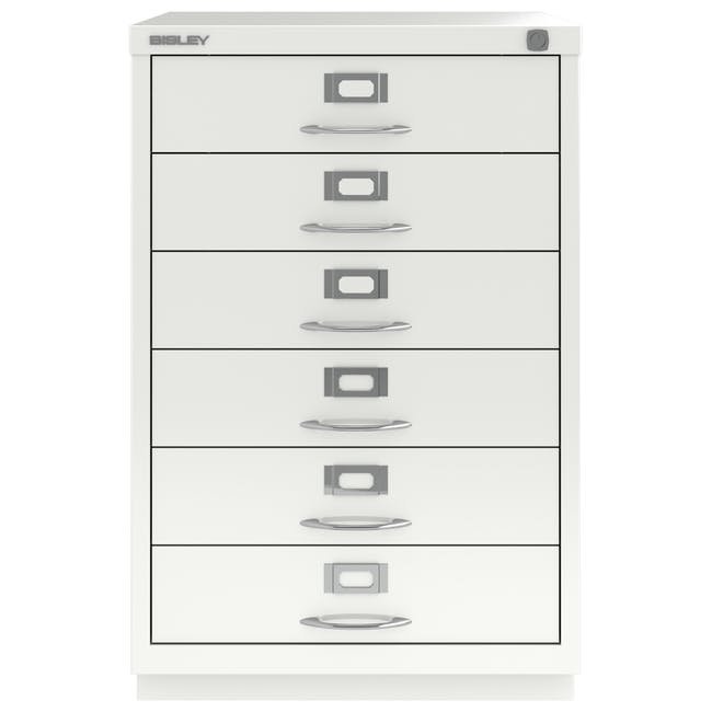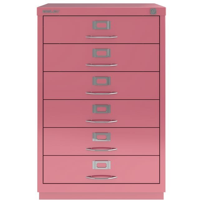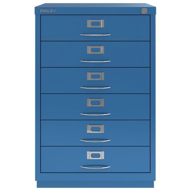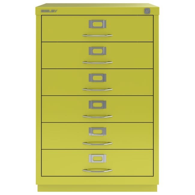 Šestizásuvkové kovové kartotéky Bisley F6E, šířka 470, výška 711, hloubka 470 mm, různé barvy, klasiké úchytky chrom.