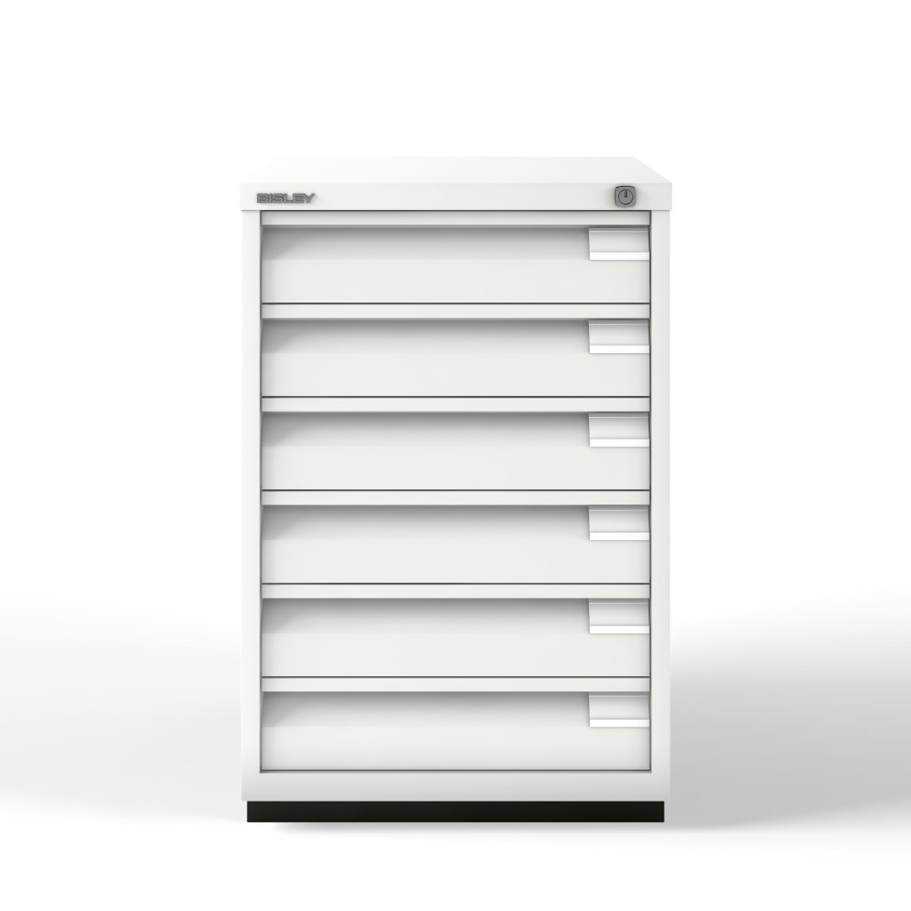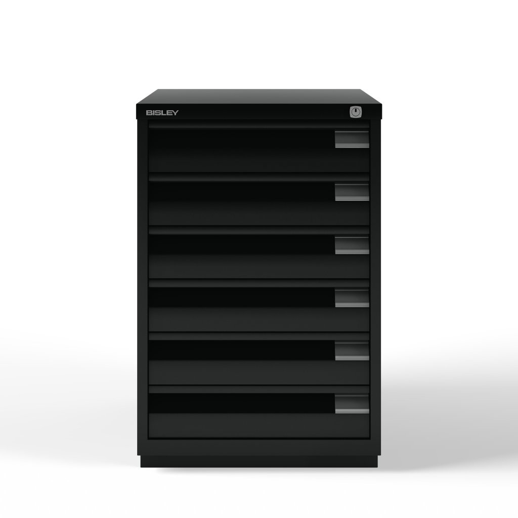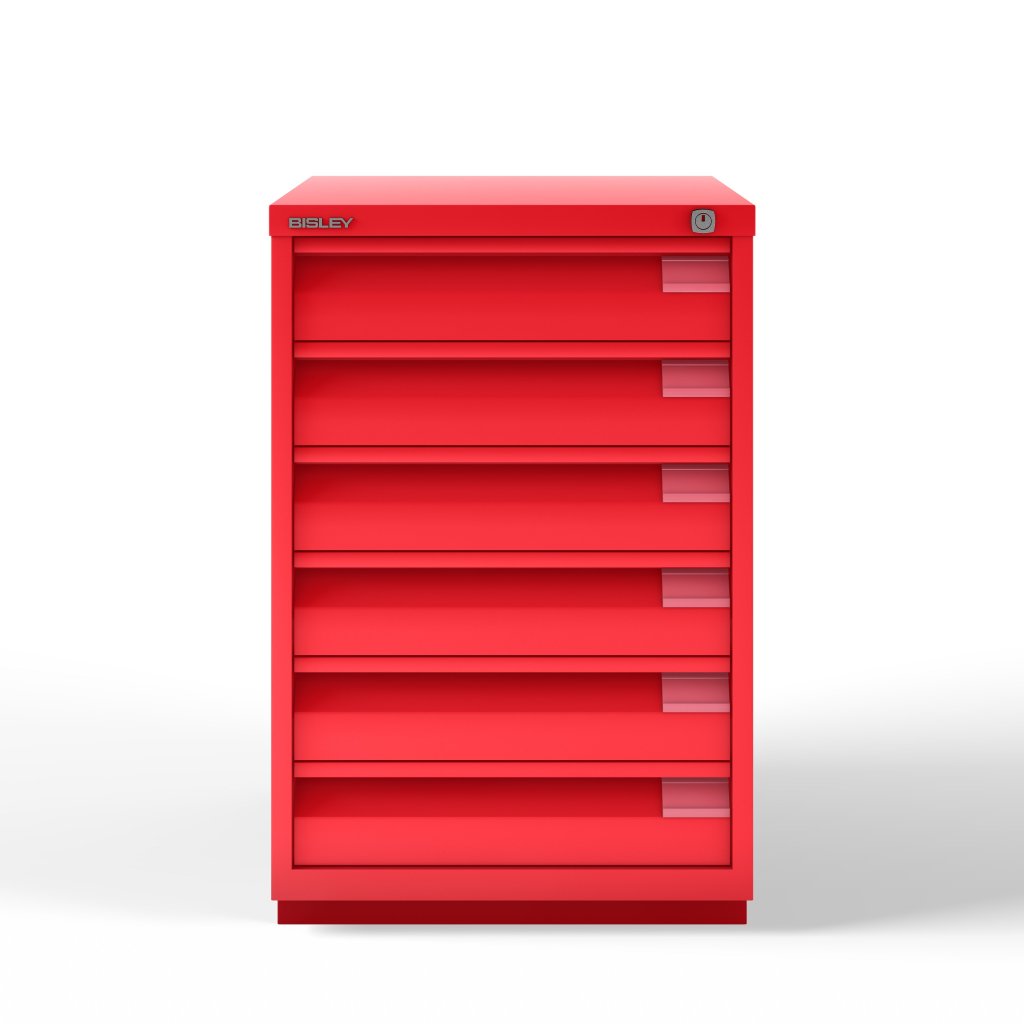 Šestizásuvkové kovové kartotéky Bisley F6E, šířka 470, výška 711, hloubka 470 mm, různé barvy, standardní úchytky (prolis).