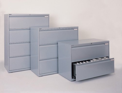 Velmi kvalitní třízásuvková kartotéka pro ukládání závěsných pořadačů A4 a Foolscap s individuálně uzamykatelnými zásuvkami. Šířka 1000 mm, výška 997 - 1021 mm, hloubka 470 mm. včetně podstavce pro vyrovnání nerovností podlahy. Vyrobeno z plechu tloušťky 0,9 mm.