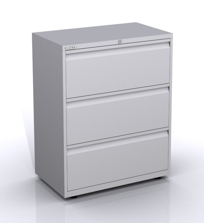 Velmi kvalitní třízásuvková kartotéka pro ukládání závěsných pořadačů A4 a Foolscap s centrálním zámkem. Šířka 800 mm, výška 997 -