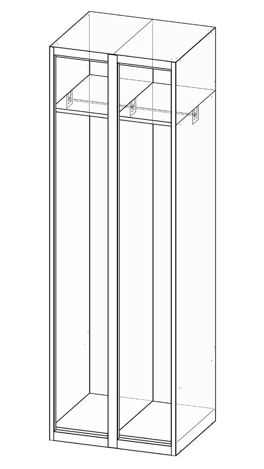 Svislá mezistěna pro šatní skříně firmy POLAK. Dělící stěnu je možné objednat a připevnit dodatečně. Pro skříně výšky 1200, 1500 a 1850 mm.