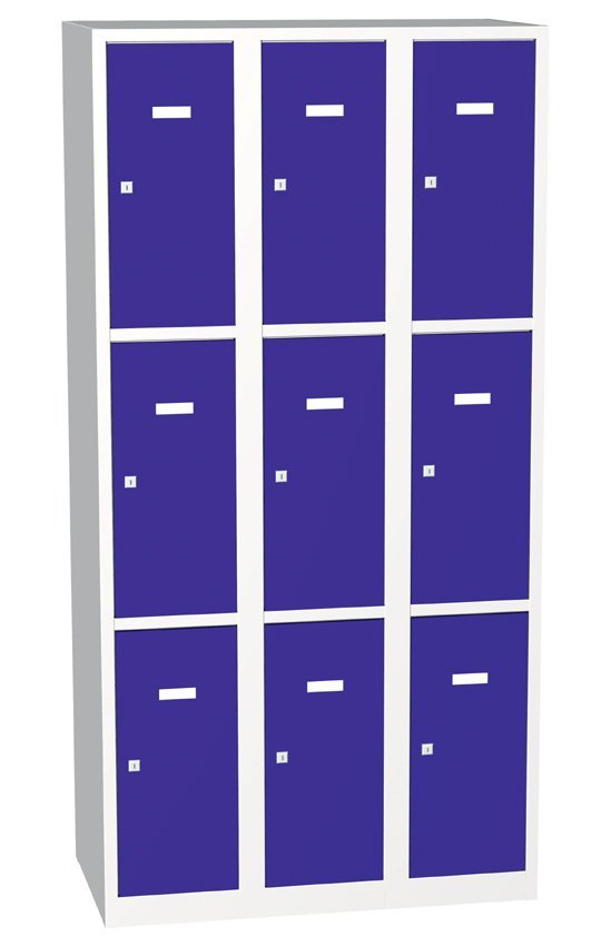 Kovová skříň s uzamykatelnými boxy, výška 1800 x šířka 900 x hloubka 500 mm. Zamykání na klíč nebo uzávěr pro visací zámek. Barva celý popis a parametry