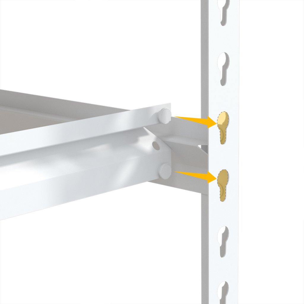 Regál se vyznačuje velmi jednoduchou a rychlou montáží, kterou zvládnete během několika minut bez použití nářadí. Rychlá montáž, vysoká kvalita a nízká cena jsou hlavní benefity tohoto produktu.