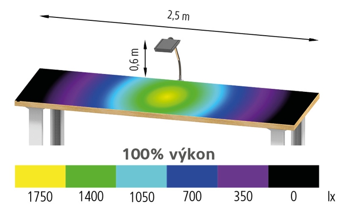 intenzita světla Emax. (0,6 m nad pracovní plochou) |
