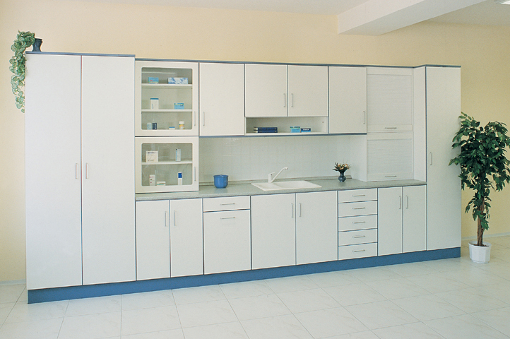 Sektorový nábytek pro zdravotnictví PRAKTIK 2 umožňuje vytvářet neomezené množství sestav v různém barevném provedení. Široká paleta skříněk a stolů zaručuje variabilitu a použití do nejrůznějších prostor vašich ordinací, sesteren a čekáren.