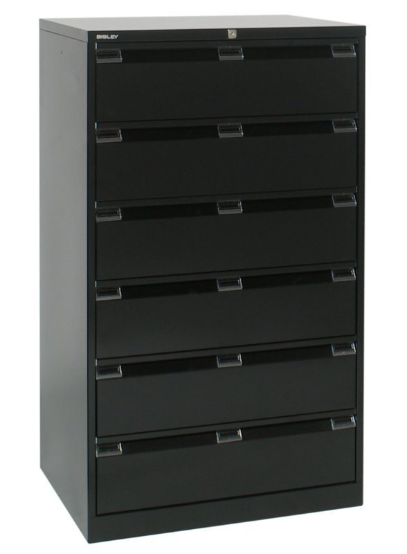 Šestizásuvková kovová kartotéka na formát A5, šířka 800, výška 1321, hloubka 622 mm.
