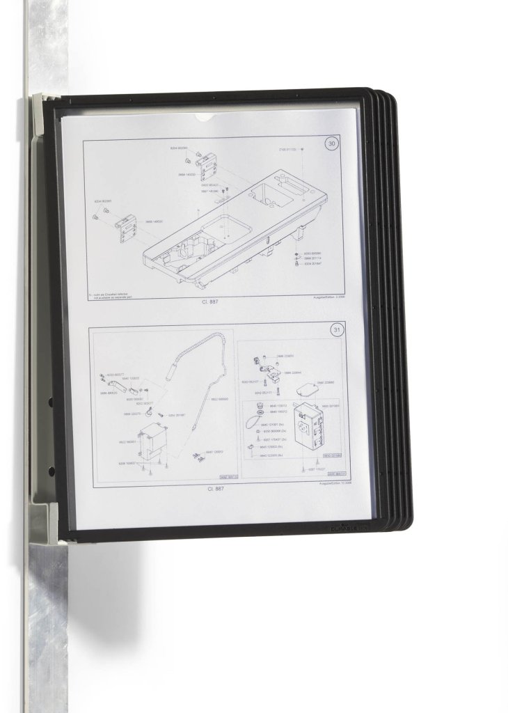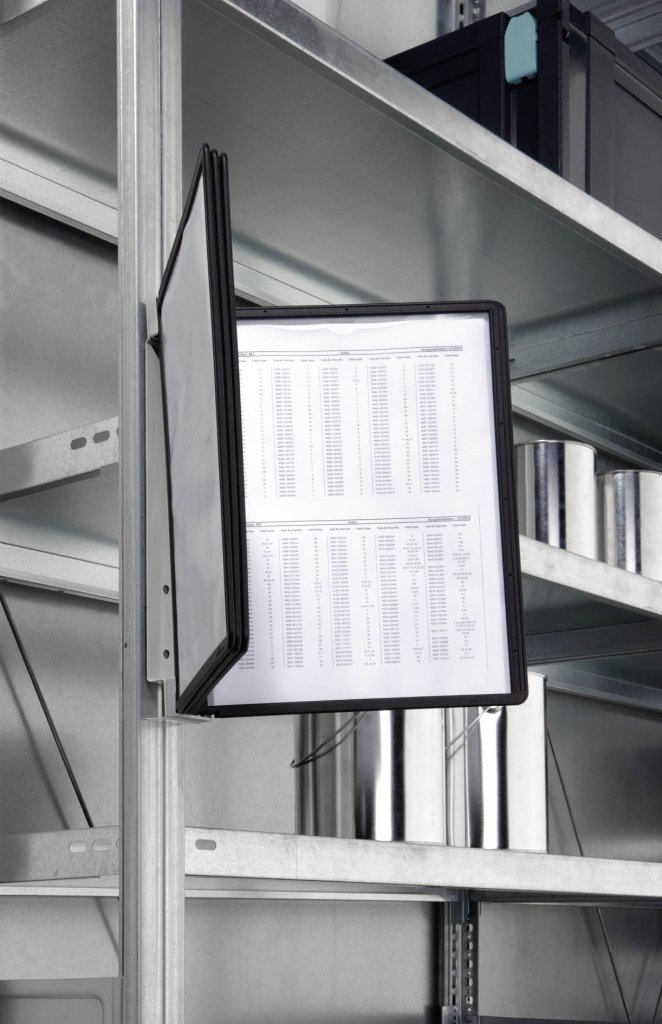 Magnetický nástěnný držák s 5ti prezentačními panely SHERPA® ve formátu A4 v různých barvách. Snadná manipulace i instalace. Díky celoplošnému magnetickému povrchu, lze základnu připevnit na kovové povrchy, jako jsou stroje nebo regálové systémy.