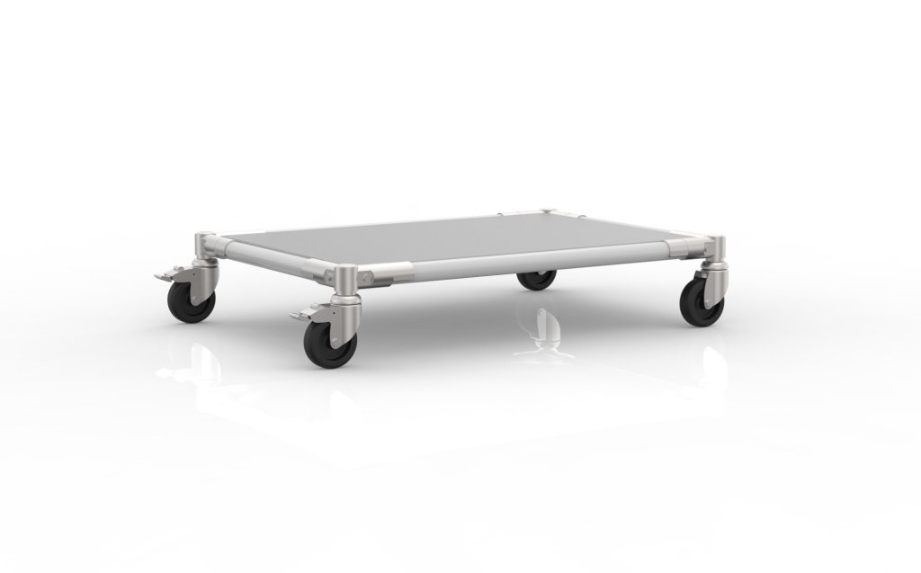Manipulační podvozek vyrobený z trubkového systému je vhodný pro různé manipulační účely ve skladech i dílnách. Součástí podvozku je lamino deska, 2 otočná kolečka s brzdou a 2 otočná kolečka bez brzdy o průměru 75 mm, která umožňují snadnou manipulaci s předměty. Vnitřní rozměr je navržen pro bednu o rozměrech 600 x 400 mm. Rozměry 138 x 678 x 478 mm.