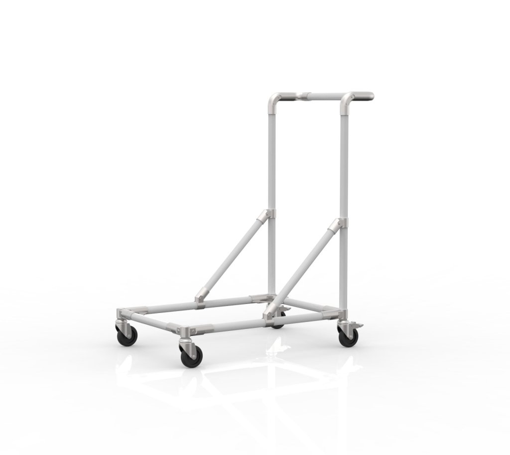 Manipulační podvozek s madlem vyrobený z trubkového systému je vhodný pro různé manipulační účely ve skladech i dílnách. Součástí podvozku jsou 2 otočná kolečka s brzdou a 2 otočná kolečka bez brzdy o průměru 75 mm, která umožňují snadnou manipulaci s předměty. Vnitřní rozměr je navržen pro bednu o rozměrech 600 x 400 mm. Rozměry 900 x 678 x 478 mm.