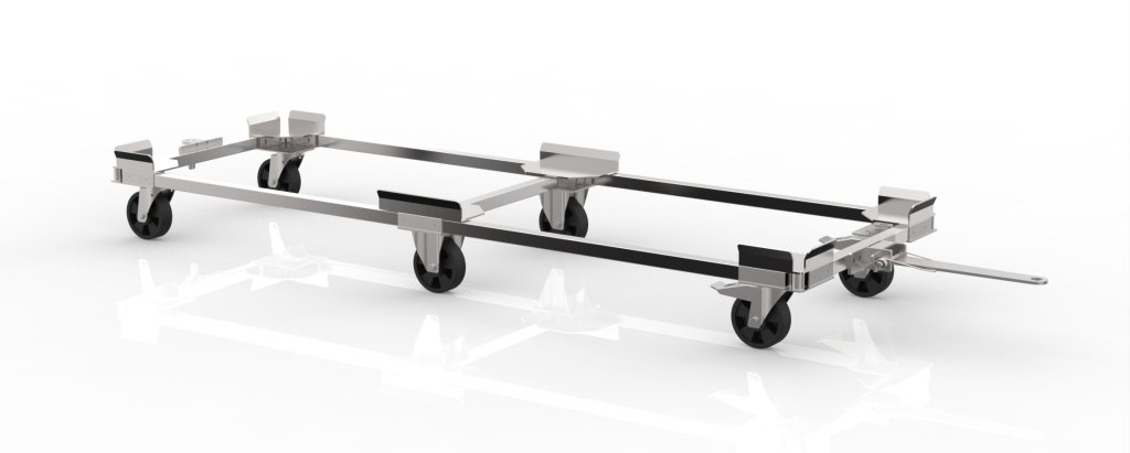 Manipulační podvozek na EURO paletu s ojí, která umožňuje zapojení více vozíků za sebe (tzv. Milk-run systém). Podvozek je vhodný pro různé manipulační účely ve skladech i dílnách. Díky své vysoké nosnosti 750 kg je ideální pro přepravu těžších předmětů. Součástí podvozku je 2x otočné kolečko s brzdou a 2x otočné kolečko bez brzdy o průměru 125 mm, které umožňují snadnou manipulaci s předměty. Rozměry podvozku 1240 x 840 x 238 mm. Možnost ESD varianty.