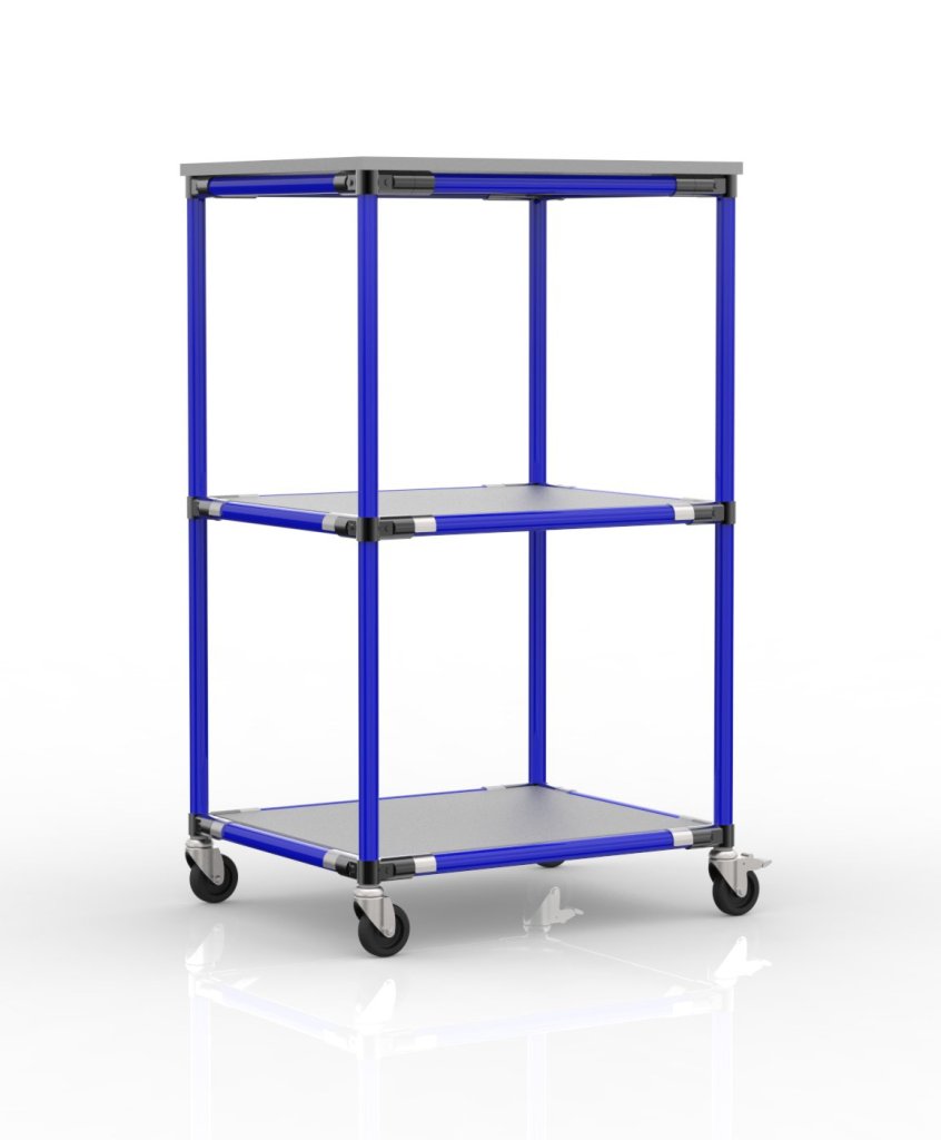 Policový vozík z trubkového stavebnicového systému vhodný do průmyslových prostor, skladů a výrobních hal. Vhodný pro přepravu celý popis a parametry