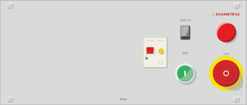 Modul 1F centrálního vypínače, jističe 10 A, chrániče a tlačítka TOTAL STOP.