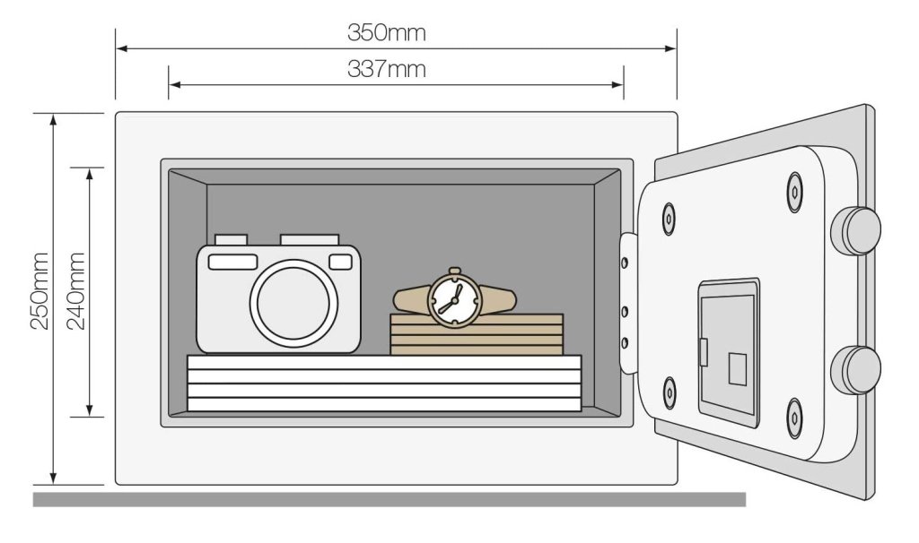 Nábytkový sejf Yale High Security s automatickým otevíráním dveří. Zamykání na elektronický kód s možností nouzového otevření pomocí klíče s dvojitým profilem. Výška 200 x šířka 350 x hloubka 200 mm, hmotnost 8,5 kg, objem 9,6 l.