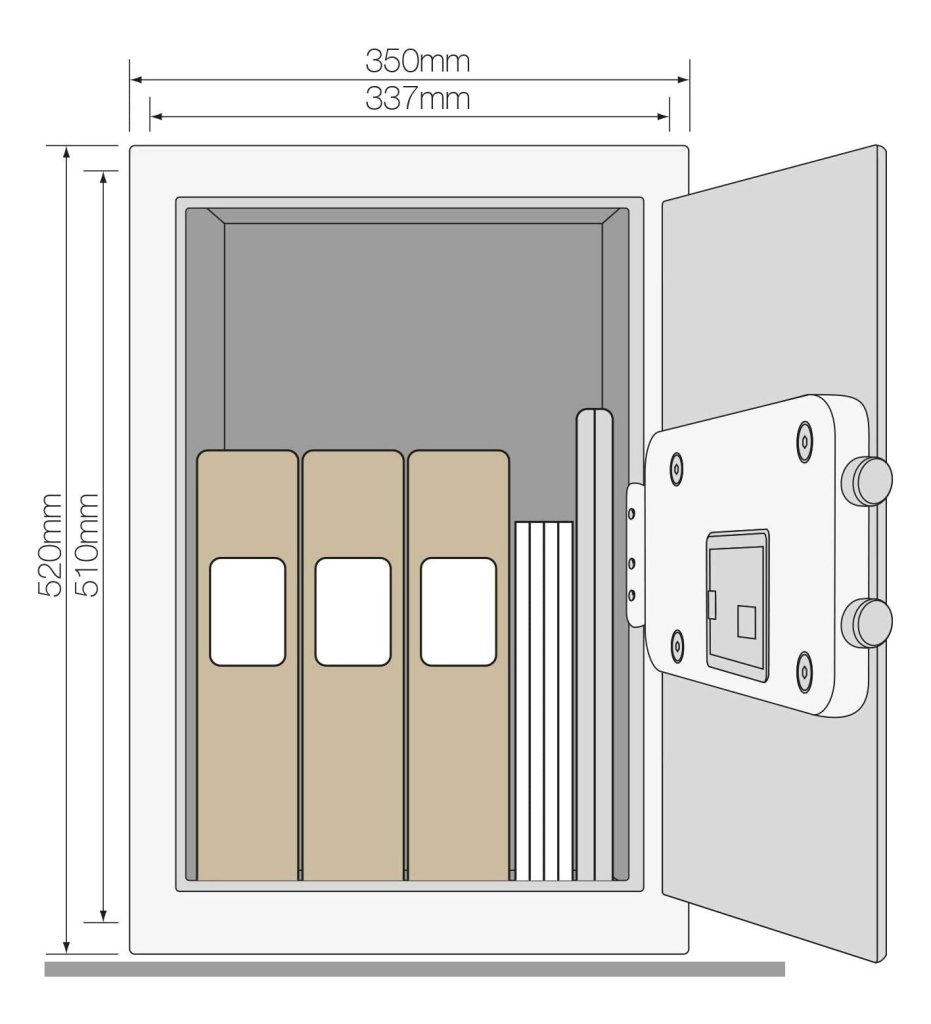 Nábytkový sejf Yale Maximum Security s automatickým otevíráním dveří. Zamykání na elektronický kód s možností nouzového otevření pomocí klíče s dvojitým profilem. Výška 400 x šířka 350 x hloubka 340 mm, hmotnost 22 kg, objem 35,5 l.