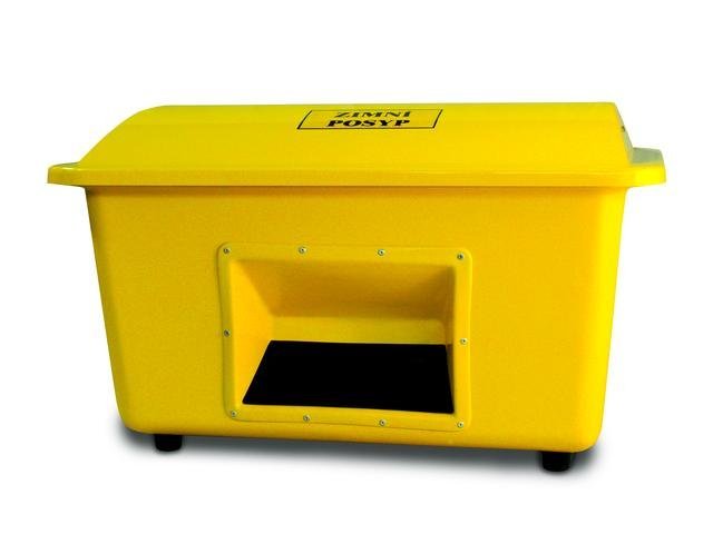 Nádoby na zimní posyp jsou určeny k uskladnění posypového materiálu (písek, štěrk, sůl apod.). Nádoby jsou vyrobeny z odolného sklolaminátu s panty z nerezavějící oceli. Barva žlutá. Objem 550 l, rozměry v. 740 x š. 1325 x hl. 980 mm.