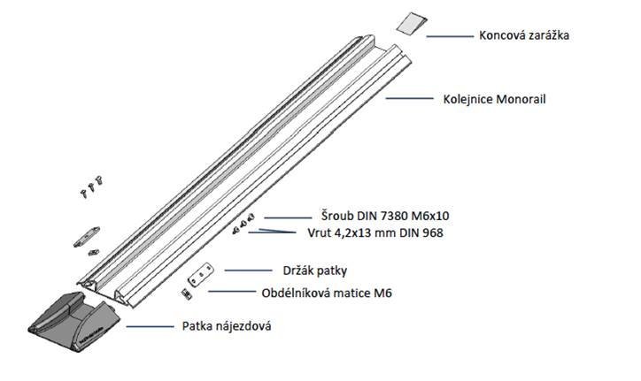 Koncová patka kolejnice FIFO monorail vhodná pro hladké najetí skladových vozíků s kolečky do profilu FIFO monorail. Patka má celý popis a parametry