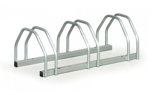 Stojan pro 3 jízdní kola svařovaný z ocelových profilů 25 x 25 mm a trubek průměru 18 mm. Galvanicky pokoveno pro vysokou korozní odolnost. Oblý tvar držáků zabraňuje poškození ráfků a kol, vhodný pro kola s maximální šířkou pneumatik 60 mm. Držák je standardně vybaven dvěma otvory pro možnost ukotvení do země nebo do stěny. Doprodej skladových zásob.