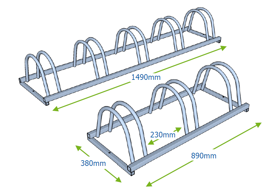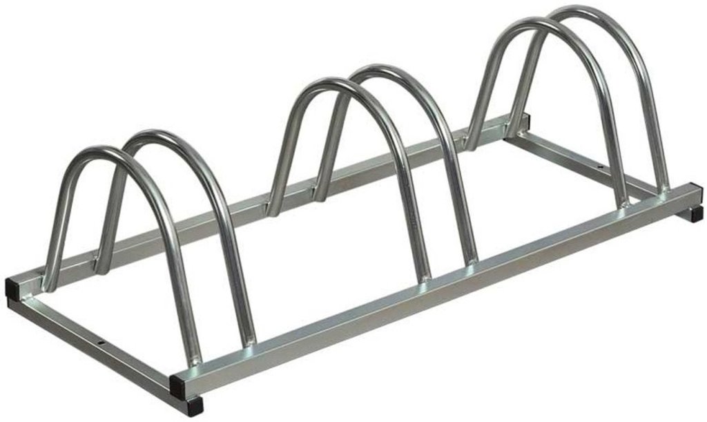 Klasický známý stojan pro 5 kol. Vhodný pro všechny typy kol se všemi standardními rozměry plášťů. Nosné části stojanu vyrobeny z ocelových profilů. Kolo lze uzamknout přes rám. Rozměry: šířka 1000 mm, výška 760 mm, hloubka 630 mm, hmotnost 9 kg, šířka stání 175 mm. Záruka 2 roky.