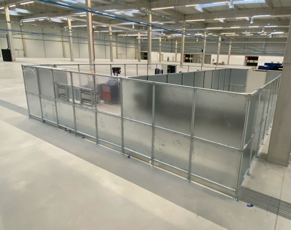 Ochranné bezpečnostní oplocení neboli oplocenka, je klíčovým prvkem pro zajištění bezpečnosti na pracovištích. Je navrženo tak, aby omezilo přístup k nebezpečným pracovním strojům a zařízení, čímž chrání zaměstnance před úrazy a nehodami. Tento typ oplocení je běžně využíván v průmyslových provozech, skladech a výrobních halách.Oplocení je z hliníkové konstrukce s kotvením do země pomocí patek, výplně mohou být z KASI GLASS o síle 3 mm nebo z pozinkovaného plechu o tloušťce 0,8 mm, dveře z lamino desky o tloušťce 18 mm se zámkem mohou být posuvné nebo otevírací. Oplocenka lze vyrobit na míru v různém provedení. Rozměry 2000 x 9040 x 8040 mm.