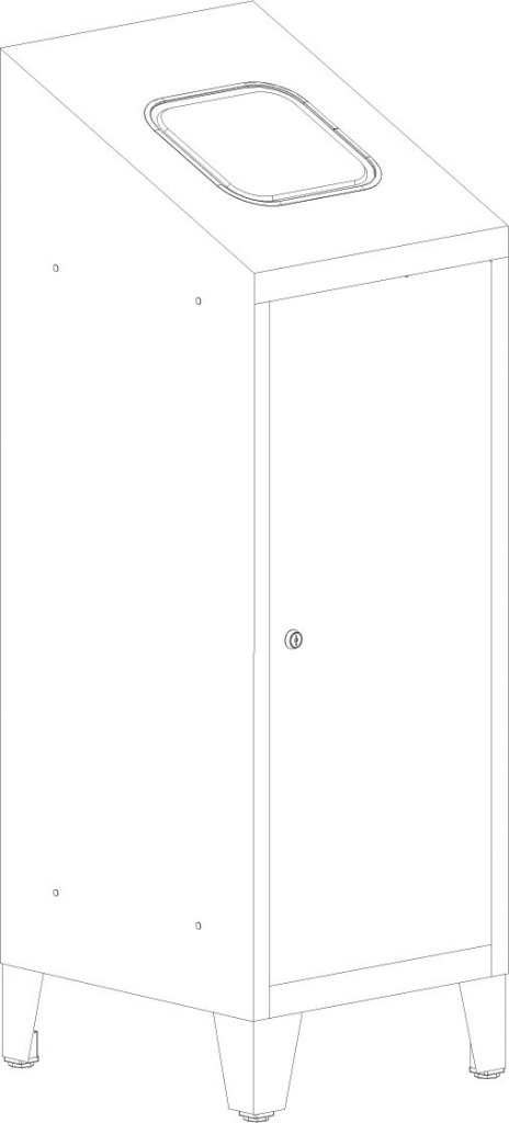 Odpadkový koš pro vnitřní použití. Na plast, papír, sklo. Korpus z 0,6 - 0,8 mm silného ocelového plechu, uzamykání cylindrickým zámkem nebo otočným zámkem pro visací zámek, víka samozavírací. Provedení s pozinkovanou vnitřní nádobou. Rozměry v mm (V x Š x H) 1220 x 800 x 450. Víka - na výběr barevnost (bez piktogramu) - zelená, žlutá, modrá (prosíme uveďte do poznámky). Fota ilustrativní.