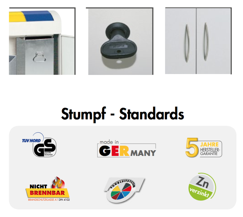Kovový odpadkový koš o rozměrech - výška 1000 x šířka 1210 x hloubka 300 mm. Celá konstrukce má pozinkovaný povrch. Zavírání má robustní chrániče ve 3 barvách pro rozlišení. Klapky jsou neustále otevřené - lze vhodit odpad bez dotyku s košem. Koš má uzamykatelné dveře v přední části a vyjímatelné vnitřní koše 3x 45 l. Dvě nastavitelné nohy pro vyrovnání nerovností podlahy. Piktogramy nejsou součástí dodávky.