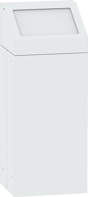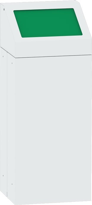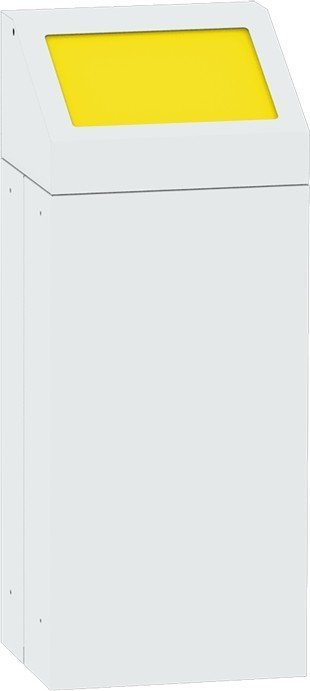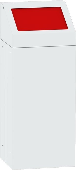 Kovový odpadkový koš s odnímacím víkem vhodný na tříděný odpad. Výška 720 x šířka 380 x hloubka 335 mm, objem 65 l. Barva koše a víka světle šedá RAL 7035, různé barvy klapek ve víku pro rozlišení druhu odpadu. Pouze pro vnitřní použití.