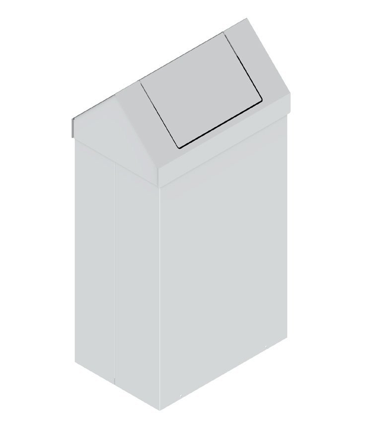 Kovový odpadkový koš vhodný na tříděný odpad. Výška 900 x šířka 450 x hloubka 300 mm, objem 90 l. Různé barvy pro rozlišení druhu odpadu. Pouze pro vnitřní použití.