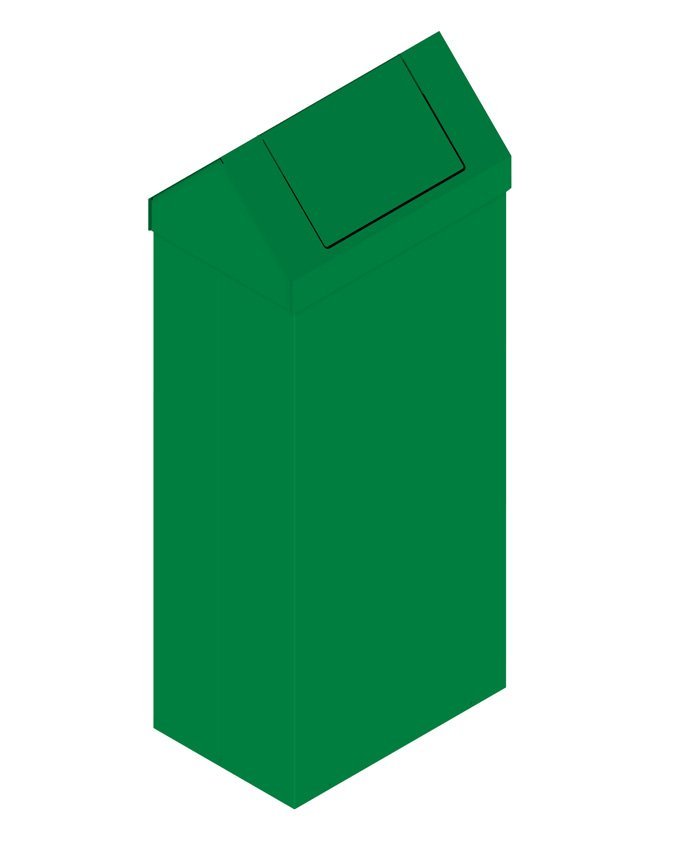 Kovový odpadkový koš vhodný na tříděný odpad. Výška 970 x šířka 380 x hloubka 335 mm, objem 100 l. Barva koše světle šedá RAL 7035, různé barvy víka pro rozlišení druhu odpadu. Pouze pro vnitřní použití.