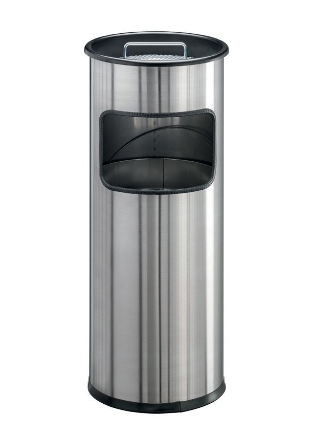 - kulatý kovový koš z nerezavějící oceli s popelníkem