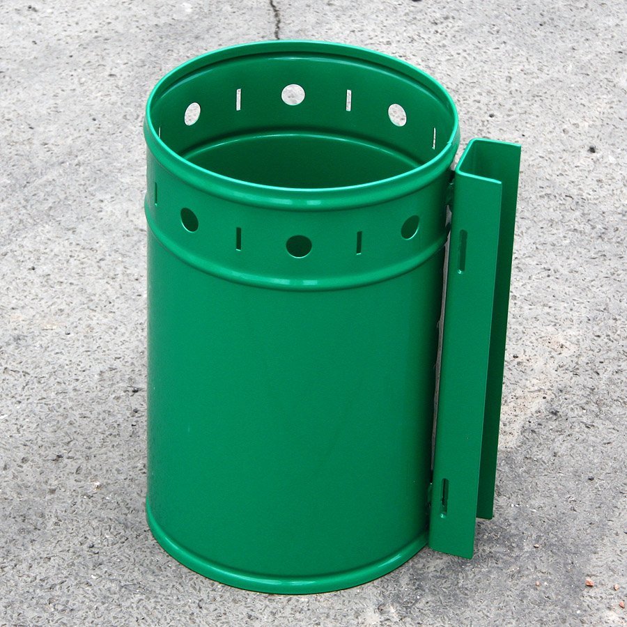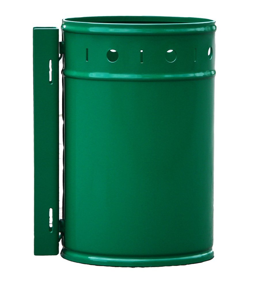 Odpadkový koš závěsný s držákem, který lze pomocí kovové pásky připevnit k jakémukoli sloupku. Povrchová úprava - komaxit RAL 6029. Objem - 15 l, výška 390 mm, průměr 250 mm. Záruka 2 roky. V ceně držák na připevnění ke sloupu, páska není součástí.