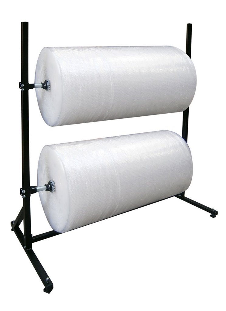Odvíjecí stojan dvojitý pro rolované balicí materiály. Rozměry výška 1500 x šířka 805 x délka 2000 mm. Barva konstrukce černá.