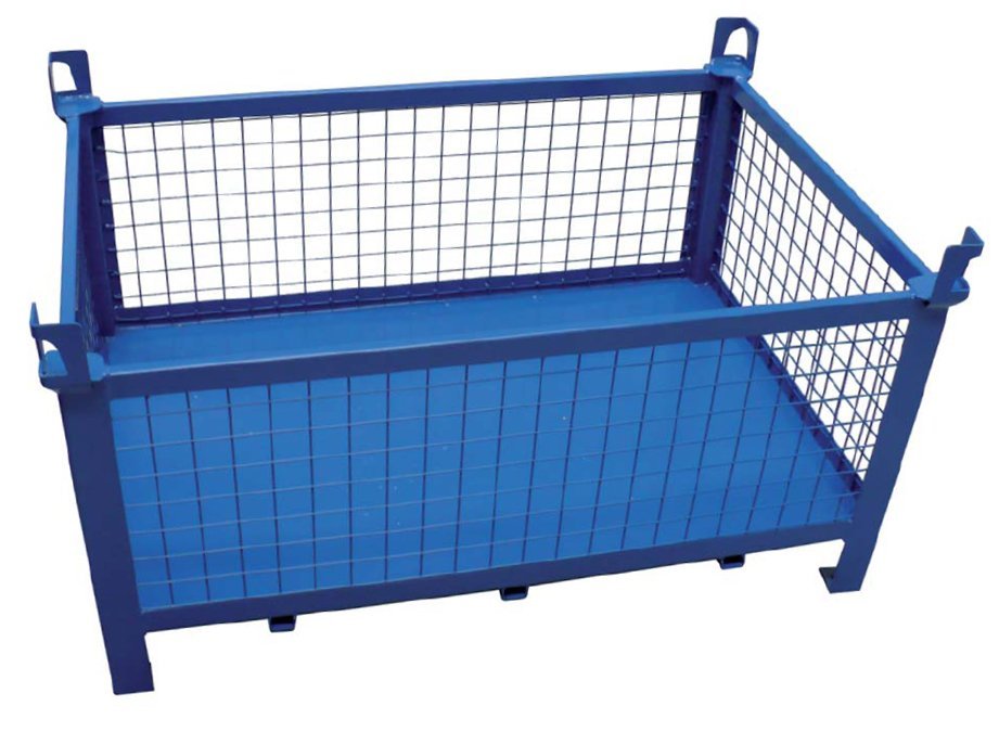 Vhodné pro přepravu a skladování materiálu, vyztužená konstrukce zajišťuje vysokou pevnost, stohovatelná. Barva RAL 5010 modrá, lze dodat i v žárově zinkovaném provedení. Výška 600 x šířka 800 nebo 1200 x hloubka 800 mm, nosnost 750 / 1000 kg.