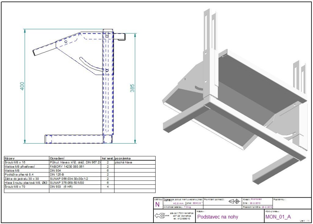 Výškově přestavitelná a sklopná opěrka nohou ke stolům MTS. celý popis a parametry