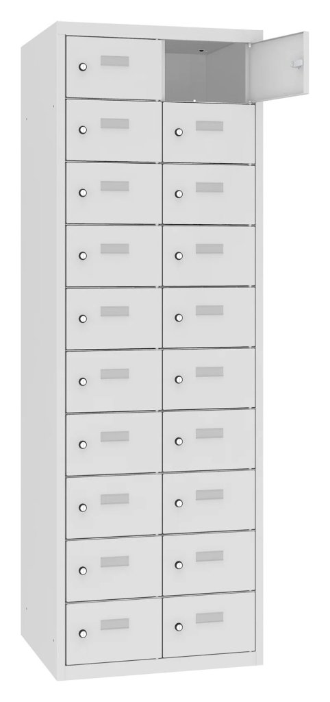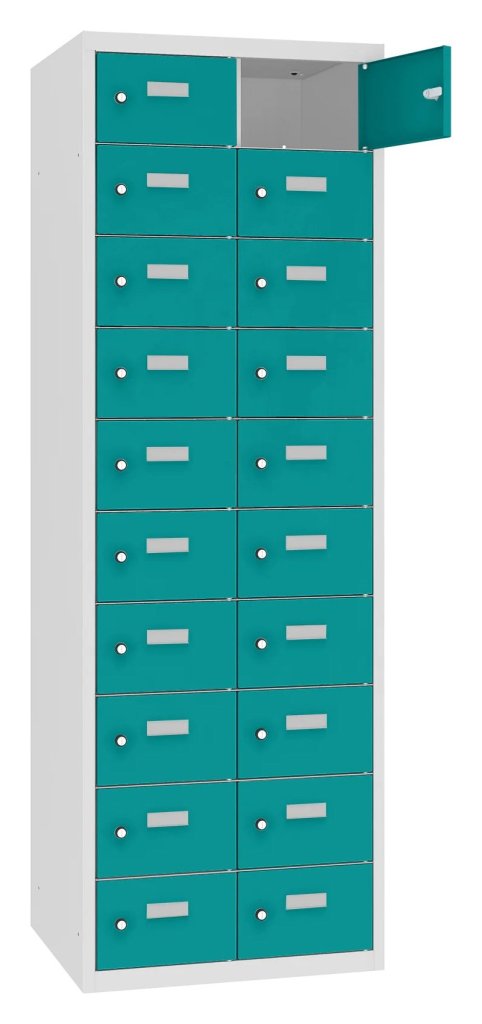 Skříňky pro ukládání osobních předmětů zaměstnanců, jako jsou potraviny, mobilní telefony, doklady a jiné drobné předměty. Ideální pro kuchyňky či společenské místnosti. Výška 1800 x šířka 600 x hloubka 300 mm. 16 barevných odstínů na výběr v ceně bez příplatku.