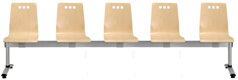 5-lavice, kovové podnože v barvě N1 černé, nohy hliníkové leštěné, spojovací profil a úchyty černé, černé krycí plasty sedáku a opěráku a černé záslepky zádového uchycení opěráku.