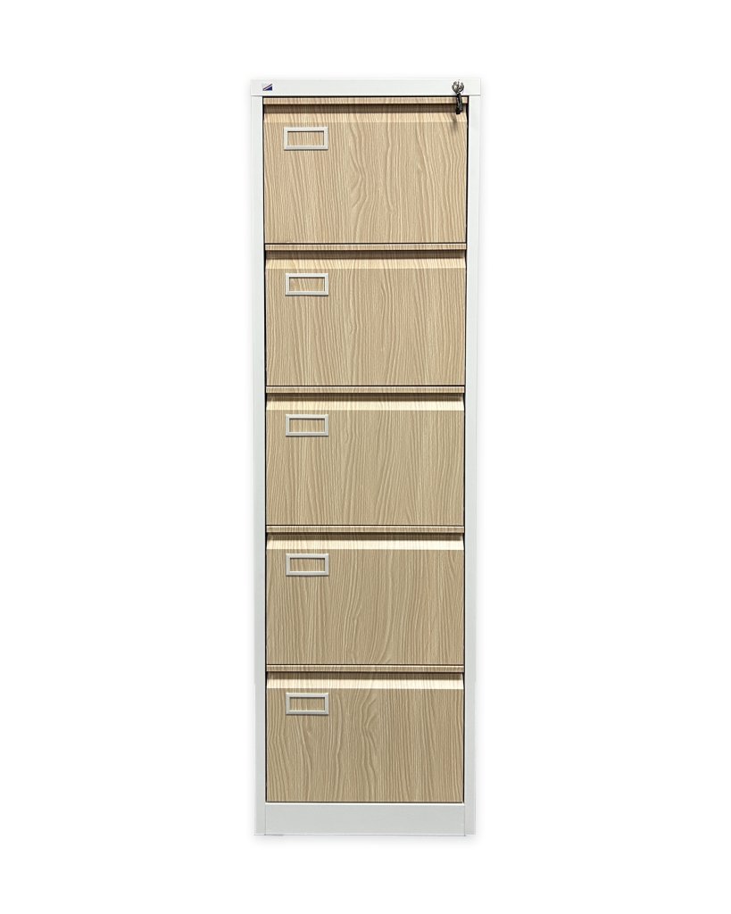 Pětizásuvková demontovaná kartotéka z ocelového plechu tloušťky 0,6 mm. Výška 1620 x šířka 460 x hloubka 620 mm, centrální zámek, plný výsuv. Pro dokumenty nebo závěsné desky formátu A4. Barva šedá RAL 7035.